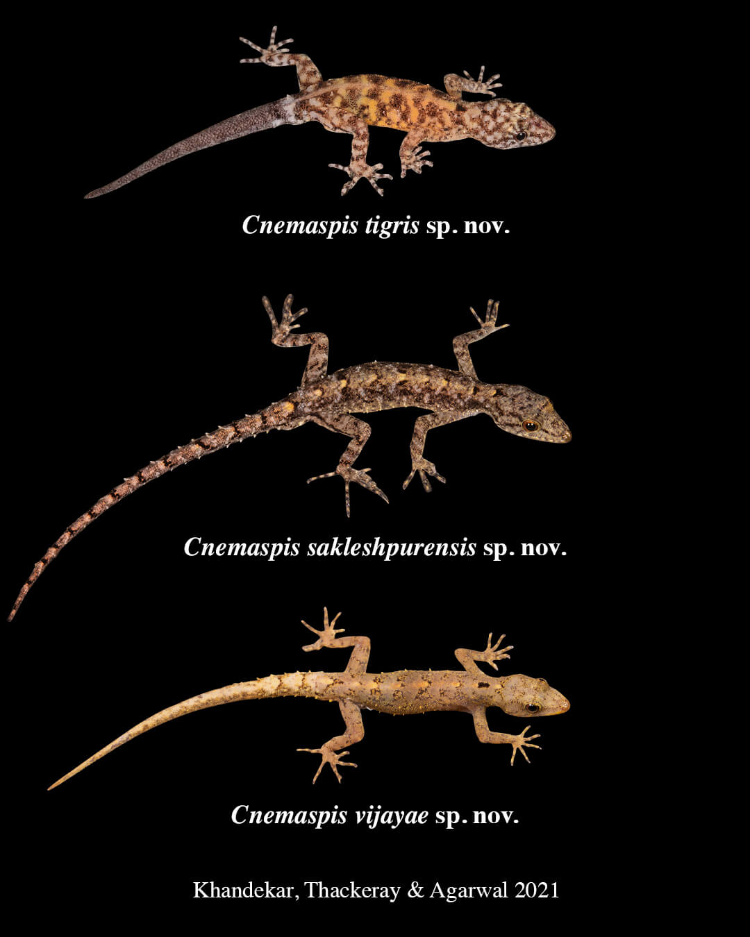 | 69 | Cnemaspis sahyadriensis | Sahyadri dwarf gecko | KHANDEKAR, GAIKWAD, THACKERAY, GANGALMALE & AGARWAL | 2024 | Maharashtra | India | Here | Click Here |
