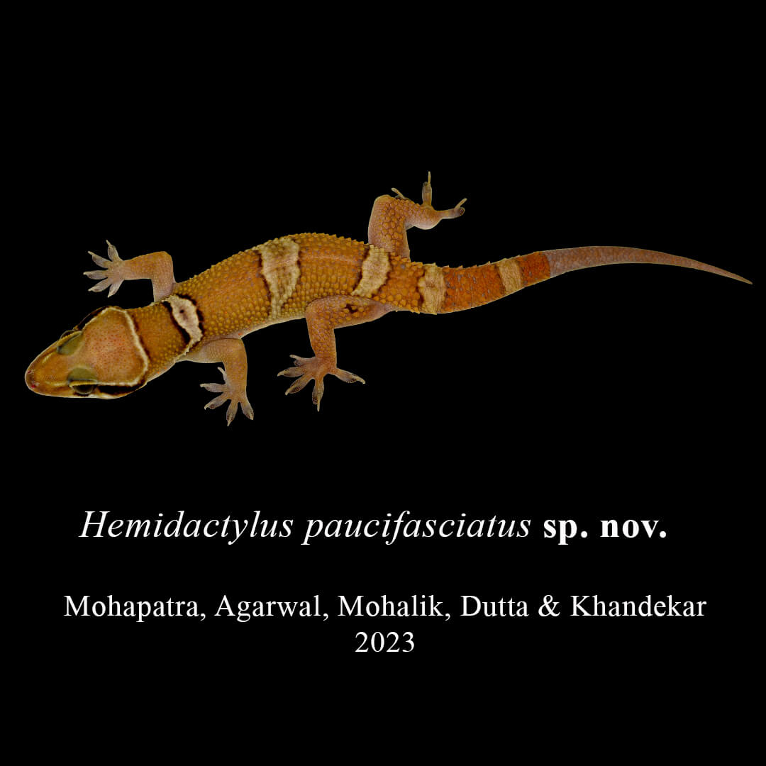 | 56 | Hemidactylus paucifasciatus | Few banded rock gecko | MOHAPATRA, AGARWAL, MOHALIK, DUTTA & KHANDEKAR | 2023 | Odisha | India | Here | Click Here |