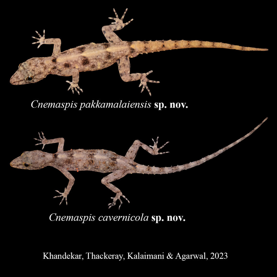 | 44 | Cnemaspis cavernicola | Cave-dwelling dwaf gecko | KHANDEKAR, THACKERAY, KALAIMANI & AGARWAL | 2023 | Tamil Nadu | India | Here | Click Here |