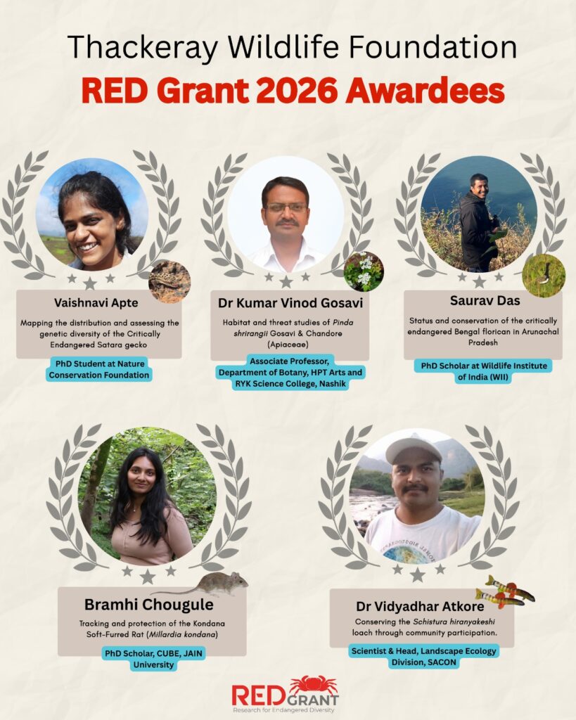RED Grant 2026 Research for Endangered DiversityThe Award Winners Got Questions?Email Us at redgrant@thetwf.org Call Us on +91 9890173451